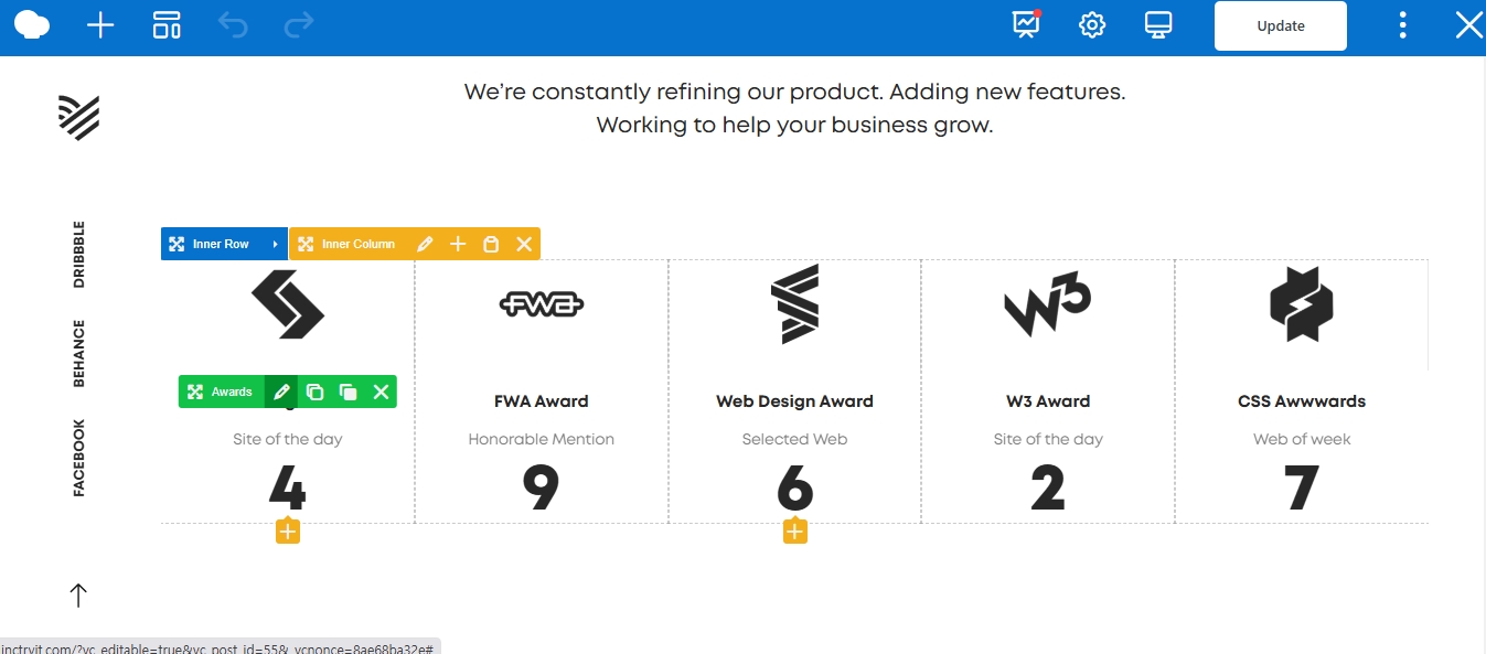 수정완료 후 왼쪽 상단의 [update]를 클릭하여 반영합니다.