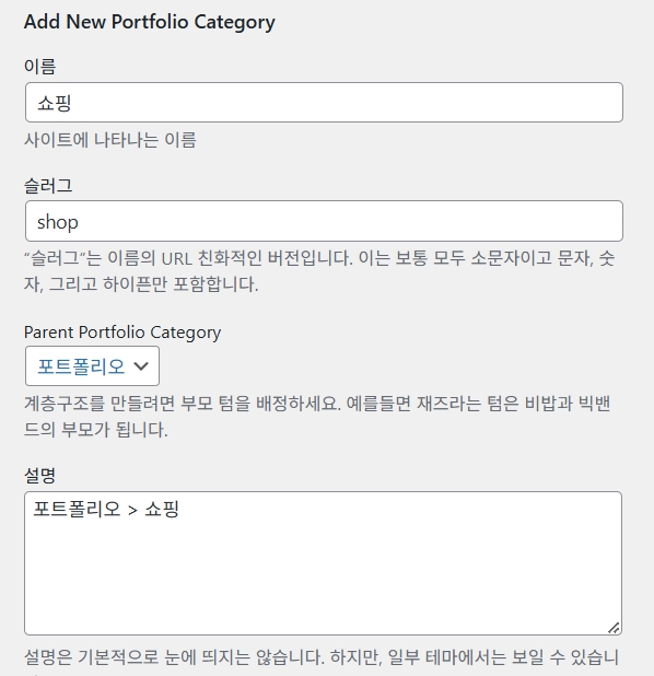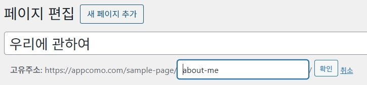 그러나 슬러그 (주소)는 영문으로 만들어주세요.