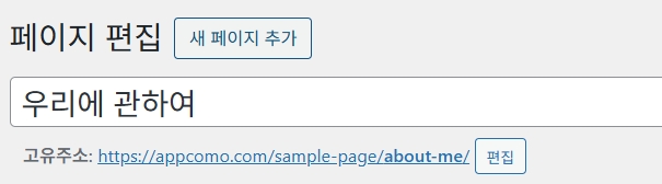 페이지,카테고리를 만들 때 페이지의 제목은 한글로 설정해도 됩니다.